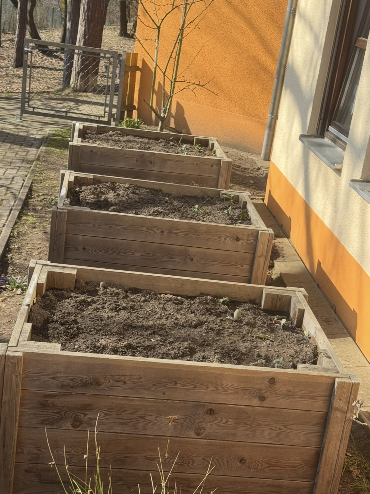 Wer hat Erde für unsre Hochbeete? Diese Frage haben wir unsere Eltern über die Kommunikations App Kikom gestellt. Bald hat sich eine Familie gemeldet, die uns den Kontakt zur Firma Warlich Dienstleistung GmbH hergestellt. Die Firma Warlich hat uns für alle 3 Hochbeete Humus gespendet. Und nicht nur das. Sie hat die Erde auch geliefert, mit abgeladen und in die Beete gefahren mit den Schubkarren. Wir sagen VIELEN HERZLICHEN DANK!!!!